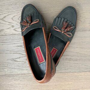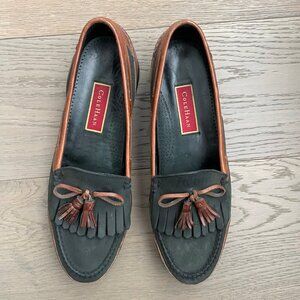 Cole Haan Vtg American Classic Leather Slip On Loafers w Tassels in Green & Brown/Tan