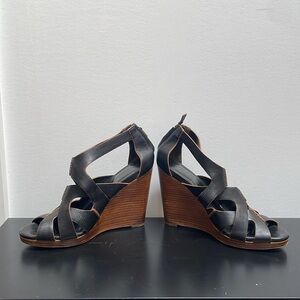 Cole Haan Wedge Heel Sandal Black Leather Open Toe Zipper Gladiator Shoe 9.5