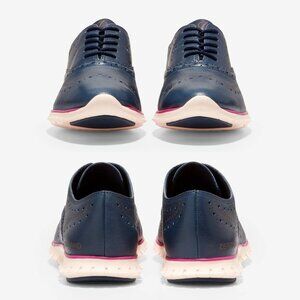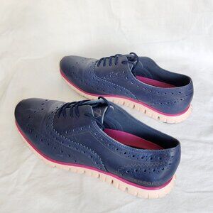 Cole Haan Women Zerogrand Leather Wing Oxford Marine Blue & Pink Sole 6B EUC
