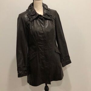 Cole Haan Women's Espresso Lambskin Leather Hidden Button Down Jacket Coat Sz M