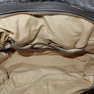 very nice grey leather Cole Haan purse. crossbody strap. great condition.