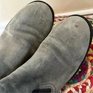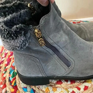 Cole Haan grey suede leather faux fur ankle boots with zippers
