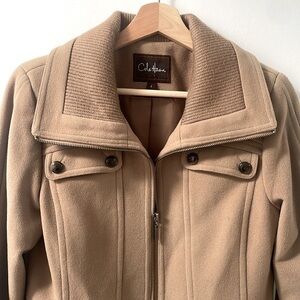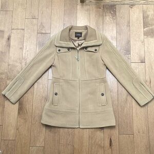 Cole Haan wool blend military trench coat jacket beige tan zipper size 4