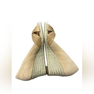 Cole Haan x Nike Air open- toed wedge platform heels with espadrille. Suede base with leather cross straps at the toe. Red soles, comes with the box.