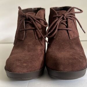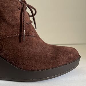 Cole Haan Brown Suede Wedge Heel Lace Up Booties Size 7.5