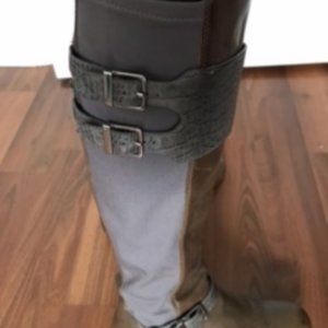 Size 5, Cole Haan/Nike Air, leather and stretchy material, grey material/taupe leather, good condition