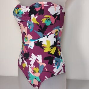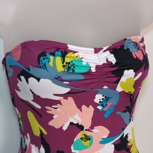 Cole Of California Floral Strapless Swimsuit Magenta Strappy Open Back One Piece