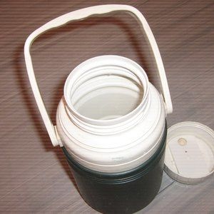 Coleman cooler thermos dark green color. Minor imperfections from using over the years. Vintage item. Not suitable for hot liquids, and is not dishwasher safe.