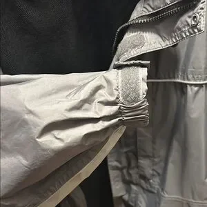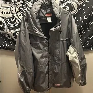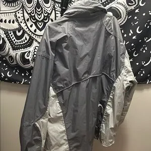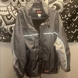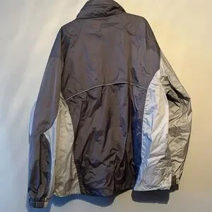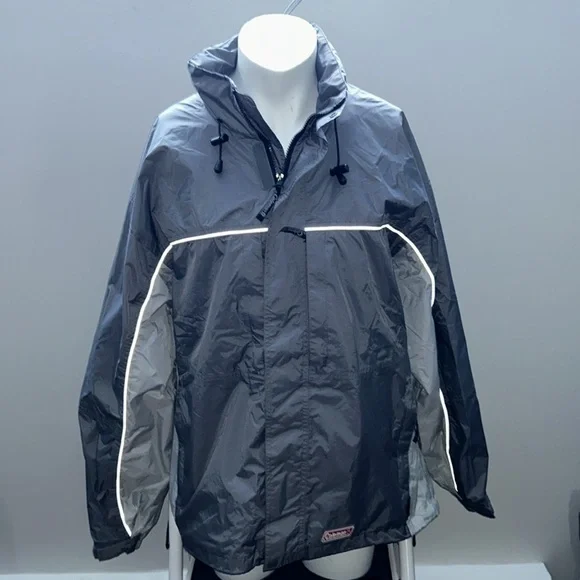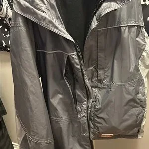 Stylish gray jacket with reflective accents. Perfect for outdoor adventures.