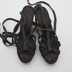 Colin Stewart Brown Tie Up Espadrilles Wedge Sandals