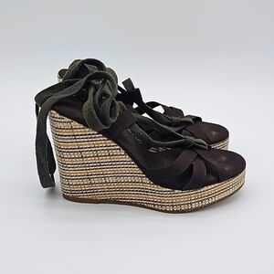 Colin Stewart Brown Tie Up Espadrilles Wedge Sandals, Size 6