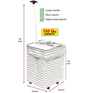 🆕 Collapsible Folding Rolling Cart w/ Retractable Handle ~ Colour: GRAY CHEVRON