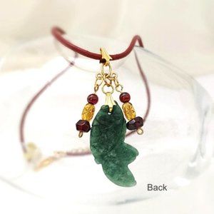Collar Genuine Green Jade FISH Garnet Leather Cord