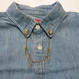 Collar Tips purchased from a small local boutique in 2014. Features gold-toned skull heads with chain link and spikes.