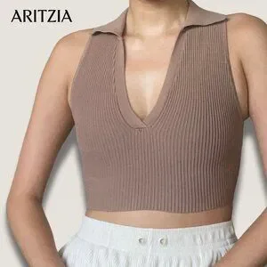 #Aritzia #CropTop #Ribbed #Knit #Collar #Babaton #BusinessCasual #VNeck #EUC #BundleDiscount