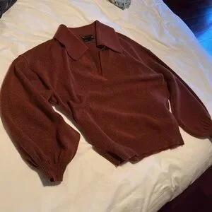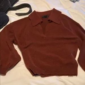Fashionable collared sweater - burnt sienna/orange colour. Rusty red. Beautiful sweater but big on me. i wouldd say it fits closer to an 8 then a 6. M/L