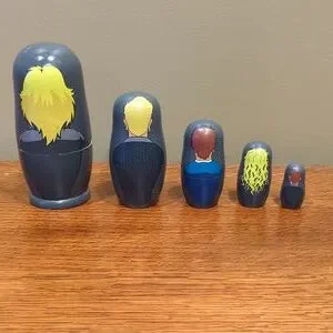 caricature wooden nesting dolls of the greatest band Def Leppard.