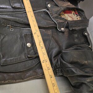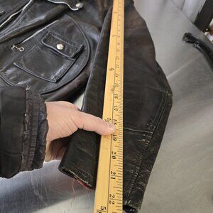 Gorgeous old true vintage brando-style (biker classic) jacket (collectable brand) with a large handful of condition issues. Needs a re-stitch on many many seams. Main zip has given up the ghost (looks like a zipper, but refuses to act like one). Some holes inside liner.