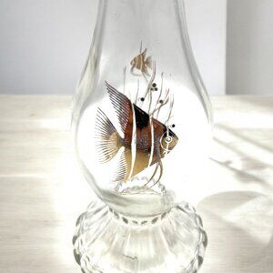 Collectible Vintage Avon Clear Glass Bottle Decanter Gold Angel Fish w/Stopper
