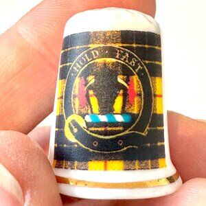 This is one of a collection of ceramic thimbles that I have inherited. This is the MacLeod tartan pattern.