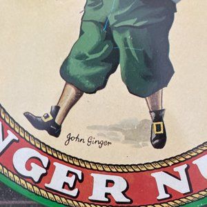 This great round tin is green and red with a lithograph of the John Ginger character created by Huntley & Palmers in 1933 as an advertising promotion to increase sales of their famous ginger nut biscuit.The company based in Reading, England was established in 1822 (201 years ago!) and re-established in 2006 after a brief hiatus. I'm not sure of the exact date of this particular tin, but it and other H&P biscuit tins have achieved museum status for their bright, colourful and iconic designs. The tin is 8 inches in diameter and 2-1/4 inches deep. It is in very good condition, with only a couple of light scratches on the top and very little rust or staining, so it presents very well - and could still be used to store biscuits!