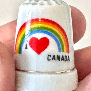 this is the last one of a collection of ceramic thimbles I have inherited. "I love Canada"