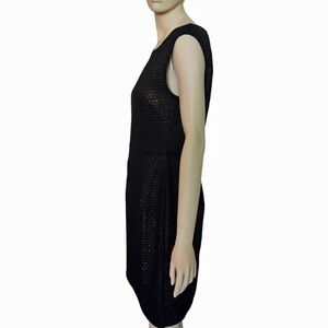 Features: Quilt effect textured, exposed back zipper, scoop neck, lined skirt, darted front and back, mini length, very versatile