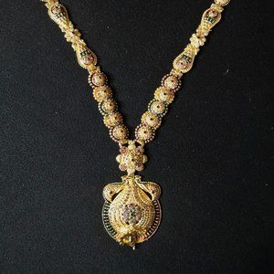 Collier long design pour femmes Bijoux traditionnels plaqué or .Design élégant d’un gramme de bijoux plaqués or serti de long collier étrangleur pour femmes