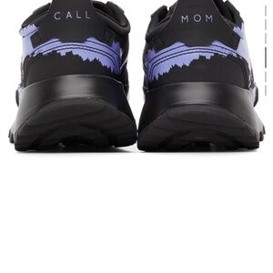 Black and purpler-blue runners. Purchased on SSENSE several years ago. Super comfortable and fun. They say CALL MOM on the back, which is kind of perfect.