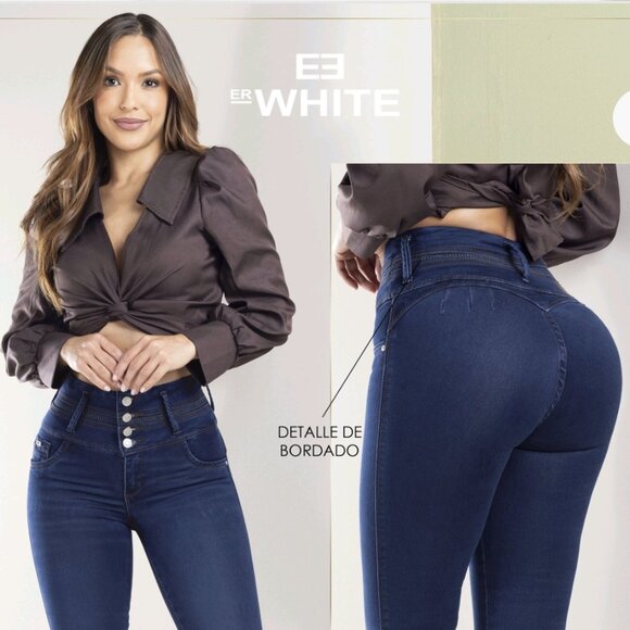 Colombian Authentic Push Up High Waist Skinny Butt -4 buttons Dark Blue