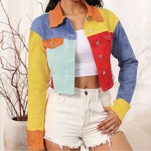 Color Block Raw Hem Frayed Button Up Jacket