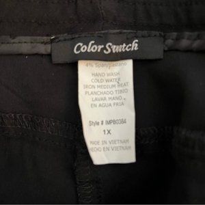 Color Swatch Cropped Black Women's Button Leg Detail Pants Sz 1x. Double button and front zipper closure. Two front and back pockets. Good condition. Flat lay: waist 17, rise 10, inseam 21, length 30.