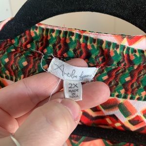Beautiful lightweight blouse, with lots of vibrancy in the color. Stylish neckline with 3/4 length sleeves with elastic at cuffs.
