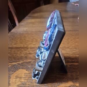 The frame is made of resin and hand-painted.
