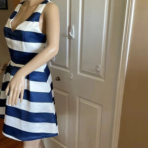 Colorblock flounce striped pleated dress,S, slight shimmer EC, coastal,fit&flare