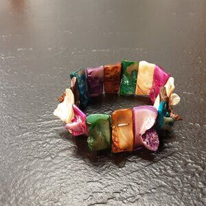 Colorful Abalone Mother of Pearl Shell Stretch Bracelet – Textured Finish