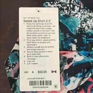 Speed Up shorts with an abstract pattern. Features a mix of colors including black, blue, pink, and white.