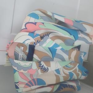NEW NEVER USED Vibrant blouse with an abstract pattern. Features shades of pink, blue, green, and tan.