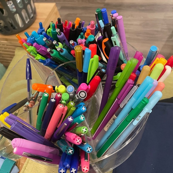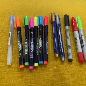 Vibrant set of assorted pens. Includes multiple colors for creative projects. Brands included: