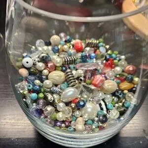 Vibrant collection of assorted beads. Includes blue, red, green, and more. Perfect for crafting and jewelry making.