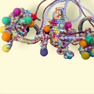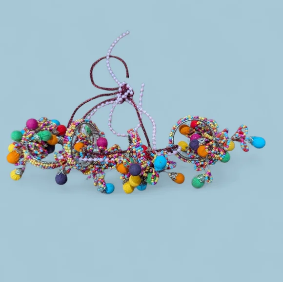 Vibrant beaded napkin rings set with multicolor design. Perfect for adding a pop of color to your boho place settings.