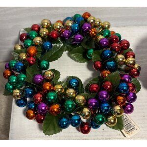 Colorful Beaded Ornament Ball & Matching Wreath Green Leaves Christmas Holiday