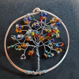 Vibrant tree with multicolored beads on a wire frame. Perfect for adding a splash of color as a ornament or suncatcher