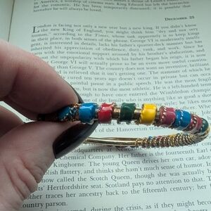 Add a pop of color to your outfit with this vibrant beaded bracelet. Perfect for any occasion.