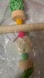 A set of colorful bird toys made with natural materials. Features green, yellow, and purple accents. Pictures are part of the description. Please review the description.