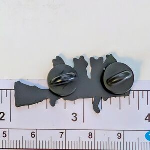 Add a touch of whimsy to your outfit with this colorful cat enamel pin. Featuring vibrant shades of red, orange, purple, and black, this pin is perfect for cat lovers.