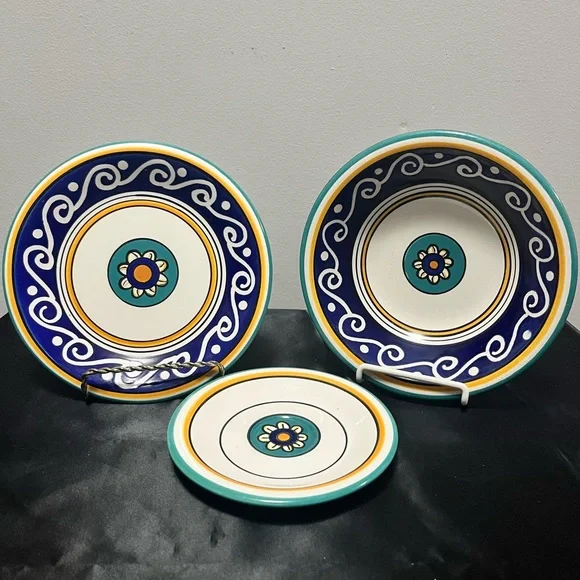 This is a 3-piece ceramic plates and bowl dinnerware set manufactured by the brand Living Art.