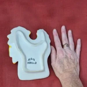 Really good condition. Made in Mexico. Vibrant ceramic rooster with intricate patterns. Features red, yellow, orange, blue, and green colors. Comes from a smoke and pet free home.