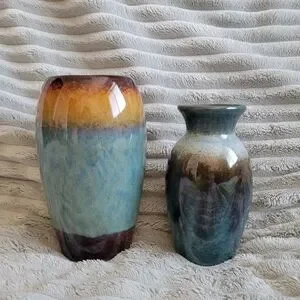 Set of two ceramic vases with vibrant colors from Michael's. Perfect for home decor. $12 for both.