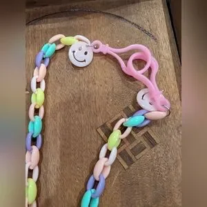 Vibrant chunky chain necklace with pastel colors. Perfect for adding a pop of color to any outfit.
